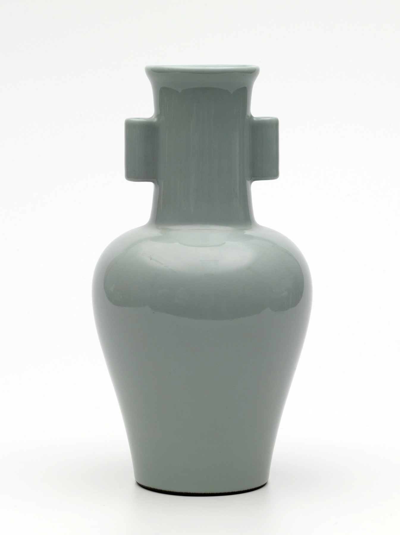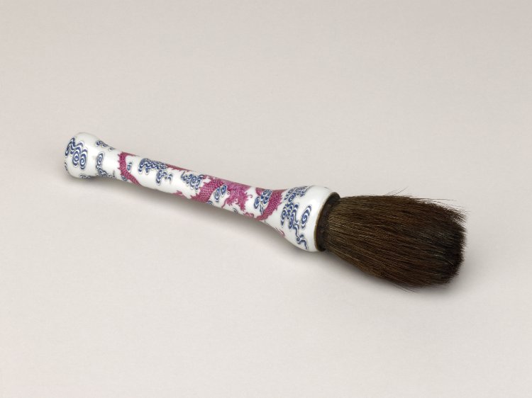An arrow vase is a type of vessel used for the drinking game “Touhu”. Participants attempt to throw arrows into the multiple tubular cylinders attached on the elongated neck. This decorative vase adapts the shape of the arrow vase but was likely not used for games. Reproduction of early porcelains was popular during the mid-to-late Qing dynasty. Fired during the Qianlong reign, the vase imitates Guan ware of the Song dynasty. Contemporary imperial tastes altered the traditional shapes and styles. For example, the crackled glaze typical in Guan wares does not appear on this Qianlong replica because of the Emperor’s insistence on perfection. The bluish grey tone of the glaze results from iron-oxide colorants. The Walter Art Museum