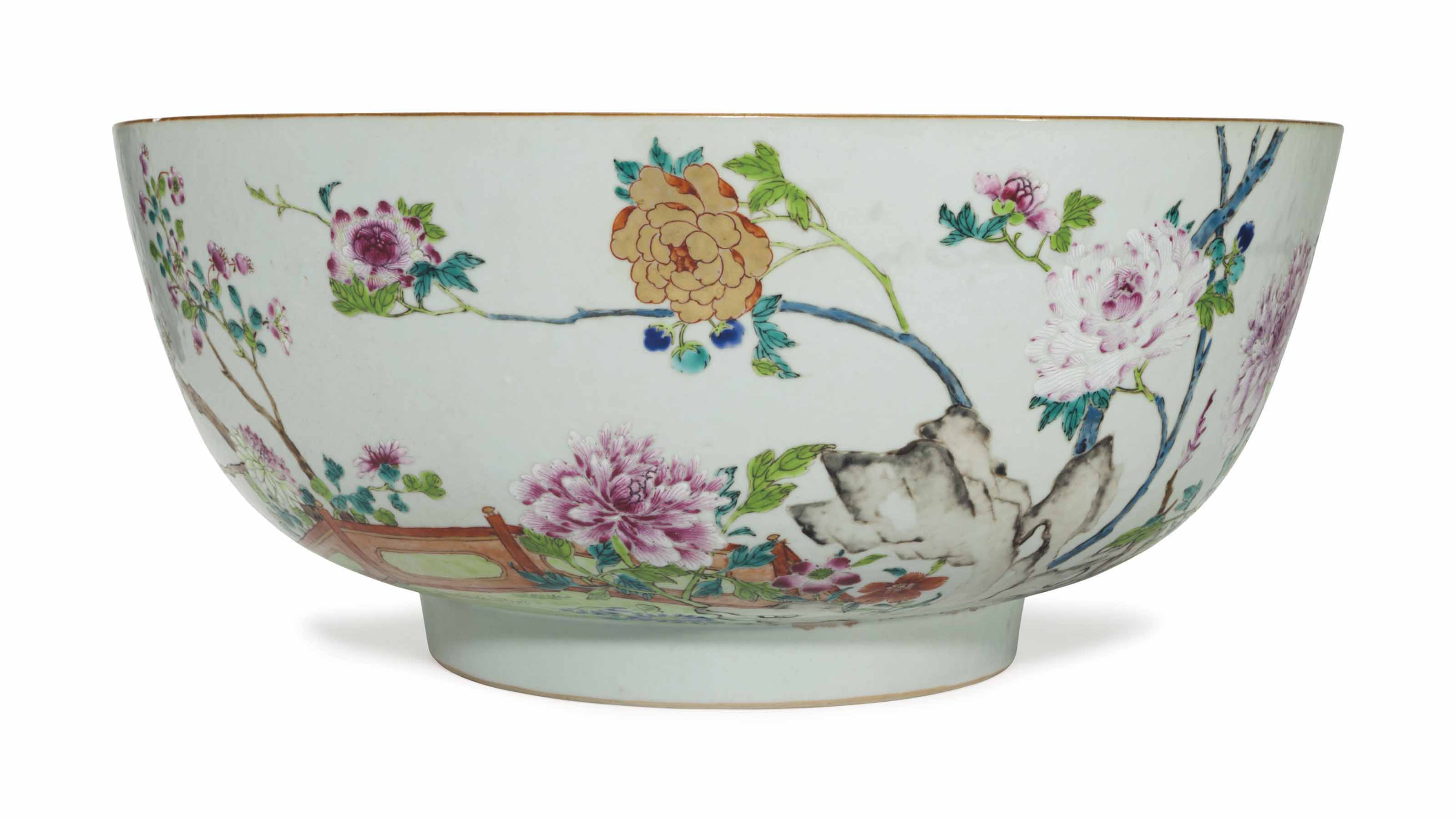 A LARGE CHINESE EXPORT FAMILLE ROSE PUNCHBOWL